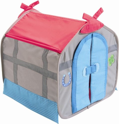A cozy home for horses!They enter through the stable door, which can then be closed with the hook and loop fasteners. The window can also be opened to give the animals a view onto the stable yard or the paddock. Thanks to the 6 bars the horse barn can be set up sturdily or you just fold it up and store in away.